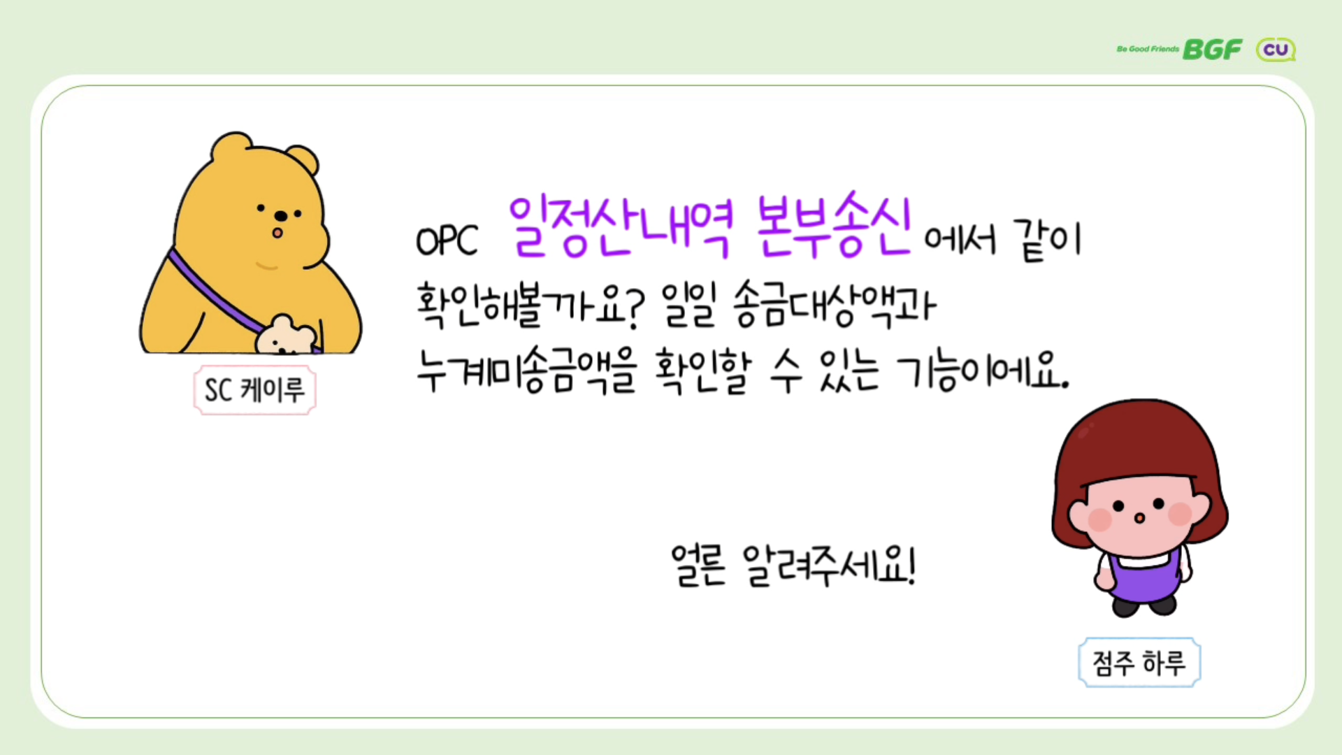 가맹입문교육 11차시 OPC일정산내역 본부송신